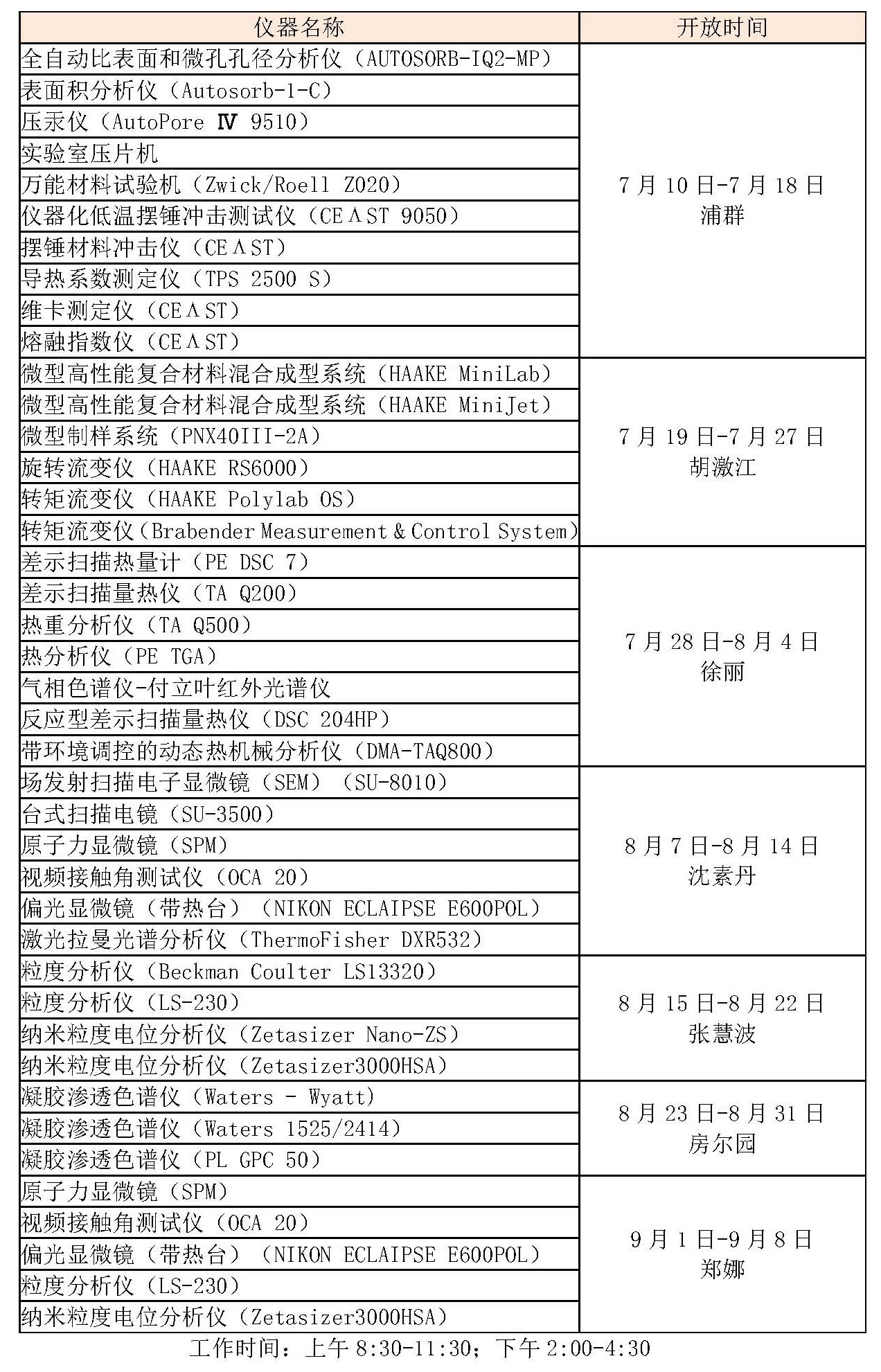 2017暑期化学工程联合国家重点实验室(浙江大学)测试平台仪器开放安排