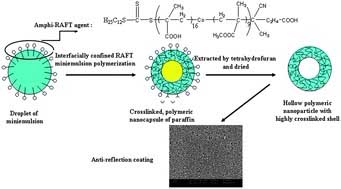 Zhijuan Sun, Yingwu Luo, Fabrication of non-collapsed hollow polymeric nanoparticles with shell thickness in the order of ten nanometres and anti-reflection coatings, Soft Matter, 2011, 7: 871-875 | |