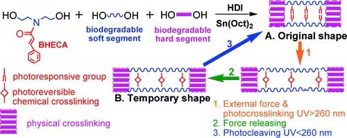 Synthesis, Properties, and Light-Induced Shape Memory Effect of Multiblock Polyesterurethanes Containing Biodegradable Segments and Pendant Cinnamamide Groups,