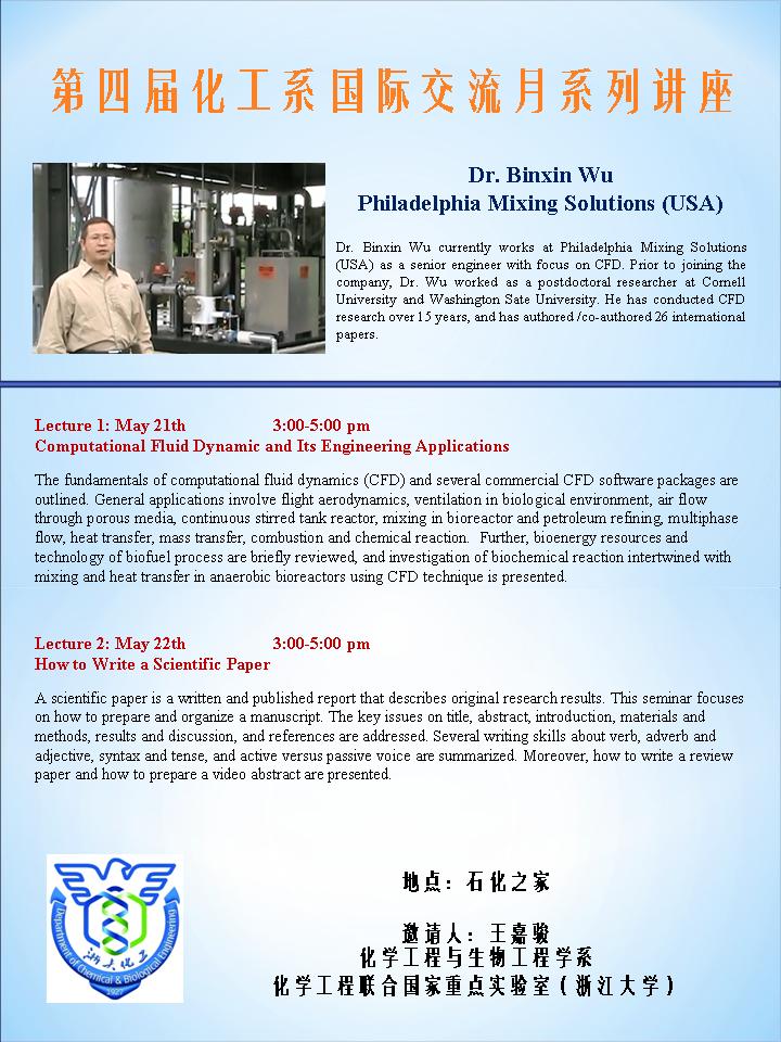 第四届化工系国际交流月系列讲座-Dr. Binxin Wu