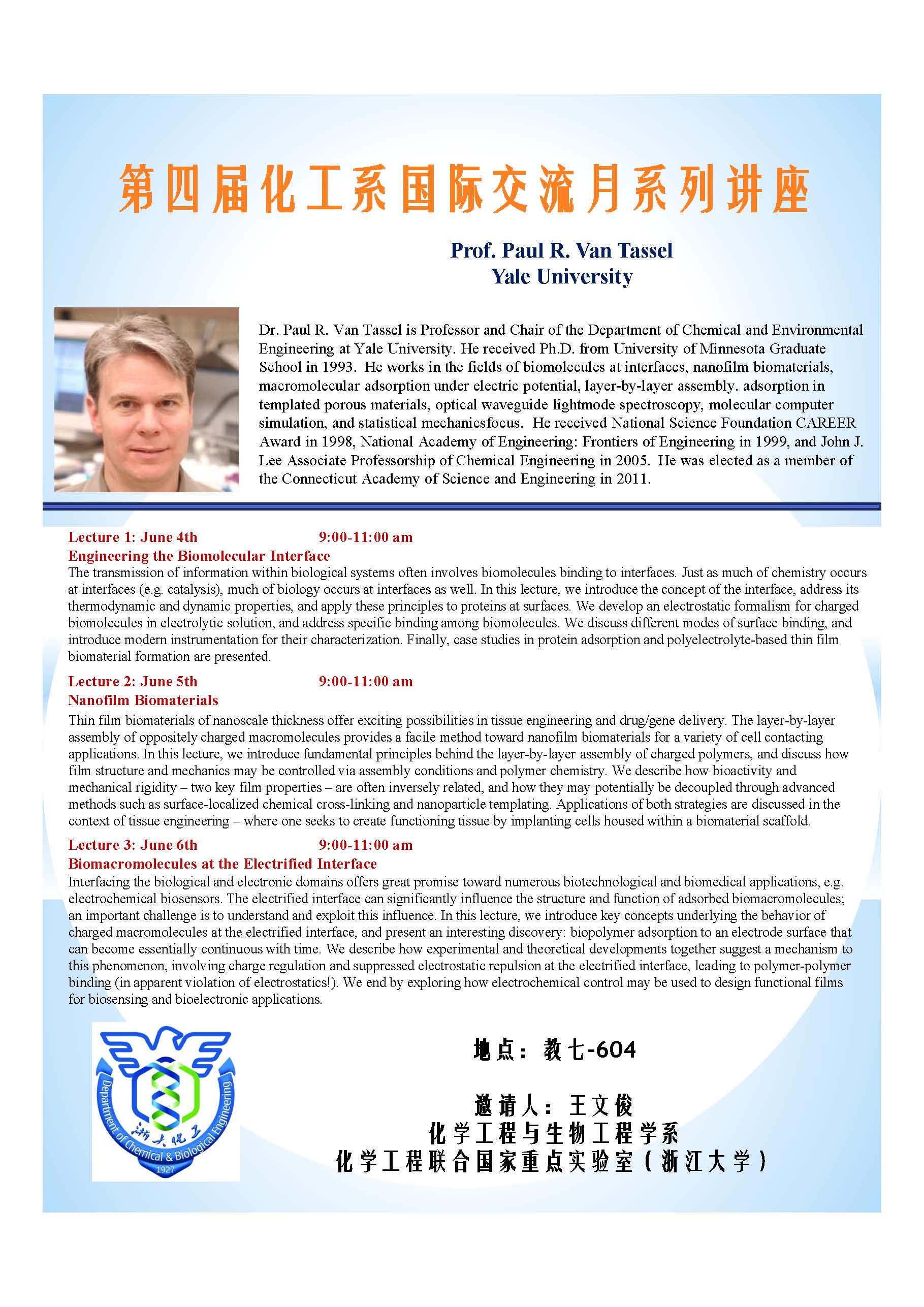 第四届化工系国际交流月系列讲座-Prof. Paul R. Van Tassel
