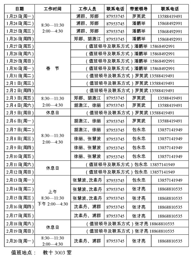 2017年寒假工作人员安排