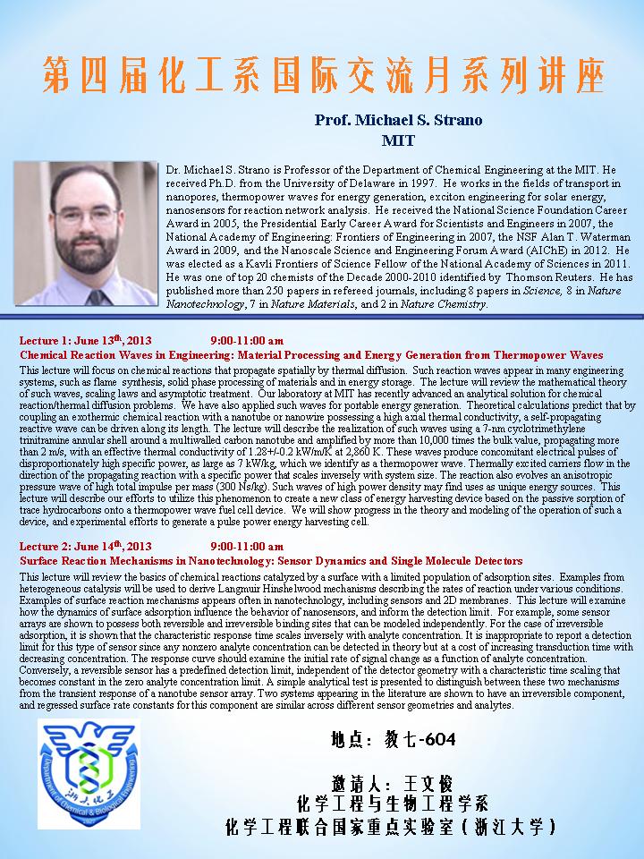 第四届化工系国际交流月系列讲座-Prof.Michael S. Strano