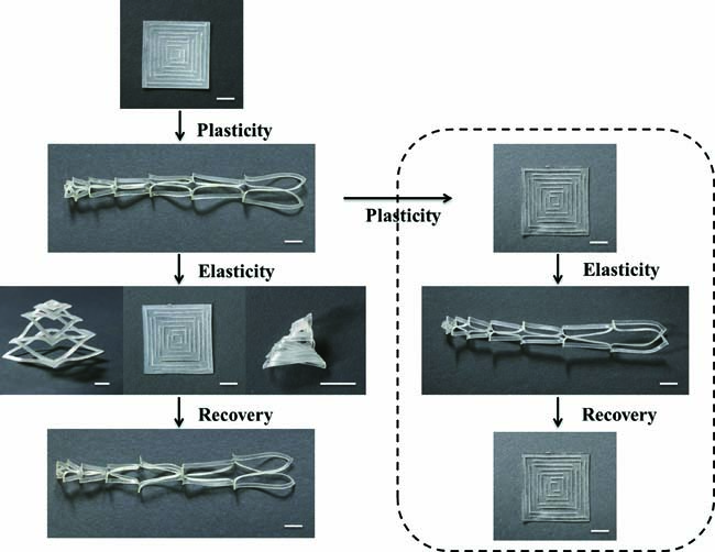 聚氨酯材料作为一类重要的工程塑料具有良好的弹性、耐粘结性、耐磨性、耐老化性,因此广泛用作泡沫塑料、弹性橡胶、油漆涂料等并应用于生产生活的各个领域。热固性形状记忆聚氨酯是一类应用广泛的变形材料,它能够固定临时形状并且在外界刺激下回复到原来初始(永久)形状,同时具有良好的热化学稳定性和优异的形状记忆性能。传统的热固性聚氨酯受到初始形状加工方法的限制,被认为是一种无法改变永久形状的聚合物材料。我们发现传统聚氨酯材料中的共价键键(氨酯键)在聚合反应催化剂存在下能发生可逆交换反应。这一发现将重新定义热固性聚氨酯材料,使传统的热固性聚氨酯能够简易地改变永久形状。进一步,我们利用该化学反应改变聚合物网络的拓扑结构,促使形状记忆聚氨酯永久形状的变化。通过和中国传统的剪纸技术相结合,我们实现了形状记忆聚氨酯多种永久形状的可逆变化。谢涛教授课题组(第一作者:博士生郑宁)题名为《Thermoset Shape-Memory Polyurethane with Intrinsic Plasticity Enabled by Transcarbamoylation》(DOI: 10.1002/anie. 201602847)的论文近期在国际化学顶级期刊《Angew. Chem. Int. Ed.》上发表,并且被该杂志选为Very Important Paper。