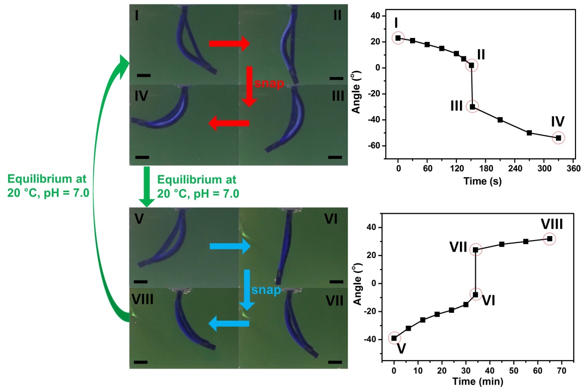 图3. 曲臂结构水凝胶组装体的可逆突变