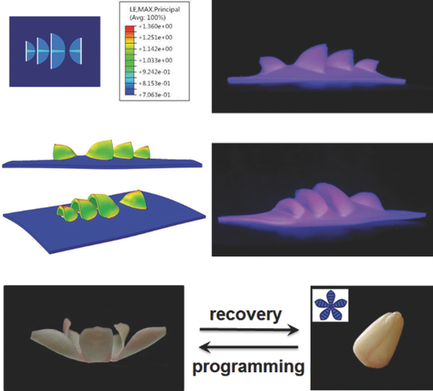 3D打印是一种增材制造方法,它相较于传统的减材制造,它在节省成本和个性化制造方面均显示出诸多优势。但现有三维打印技术无法回避的挑战在于逐层固化成型,打印一件物体一般要数十分钟至数小时,打印的速度和有限的材料选择成为了它推广和应用的短板。为此,化工系谢涛课题组开发了一系列可由普通投影仪进行数字化光固化的单体体系,并借鉴了水凝胶由二维平面经不均匀溶胀变形为三维结构的技术,实现了聚合物的超快速三维成型,“打印”时间仅须二十余秒。与直接的3D打印不同,4D打印则是通过在二维平面中引入非均匀性质,从而产生内应力,外界的刺激(如加热)使得内应力的释放,来实现从二维到三维的直接成形(并且增加了随时间变化的第四维度)。文章中以两种截然不同的水凝胶体系和溶胀石蜡的体系说明了该技术的通用性,其中石蜡溶胀的形状记忆油凝胶的应用有望大大提高失蜡铸造等模具加工方法的效率。该工作目前已发表在国际化学顶级期刊《Advanced Materials》,题为“Ultrafast Digital Printing toward 4D Shape Changing Materials”(DOI: 10.1002/adma.201605390)。