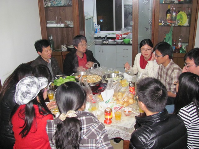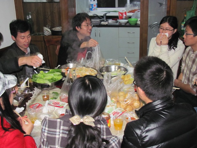 2011年12月3日,为活跃课题组氛围,促进组内交流和团结,组织了一次新鲜的家庭聚餐,大家聚在一起煮火锅,畅聊,看电视,玩的非常开心!