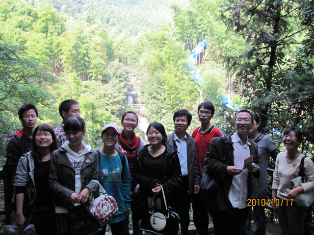 2010年10月17日,课题组为欢迎2010级新生,组织全课题组学生前往安吉白水涧景区秋游,使新生能更快的融入我们这个温暖的大家庭。
