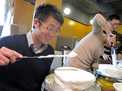 2012年元旦前日,课题组全体同学杀向克里斯丁蛋糕店,一同向师傅学习蛋糕制作,并DIY了多个蛋糕,欢乐温馨地迎接新年的到来。