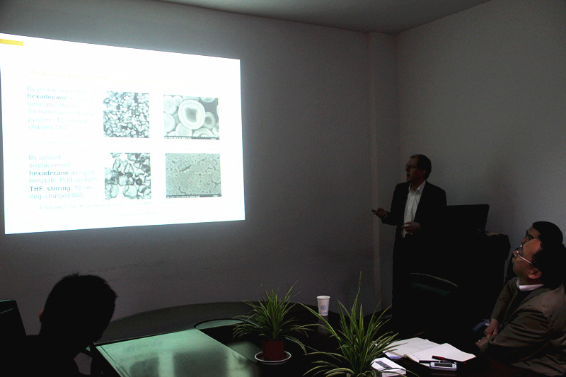2014年04月01日,德国乌尔姆大学Ulrich Ziener教授应单国荣教授的邀请到课题组参观访问,并做了题为“Inorganic-Organic Hybrid Nanoparticles Versatile Tools for Materials and Biomedical Applications"的学术报告,在报告之后Ulrich Ziener教授与课题组师生就双方感兴趣的问题进行了交流和讨论。