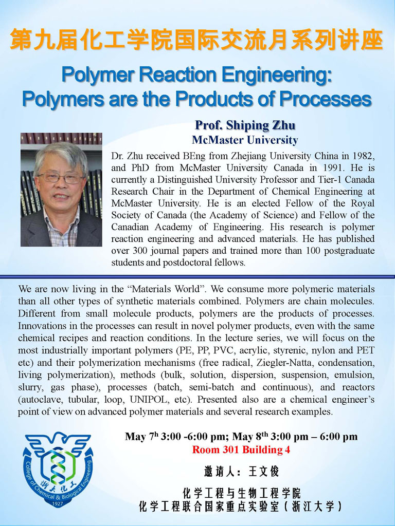 化工学院第九届国际交流月系列讲座----Prof.Shiping Zhu