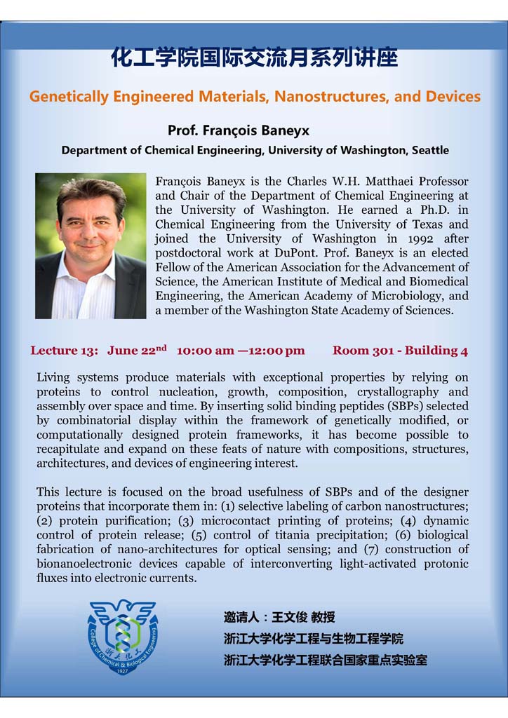 化工学院第九届国际交流月系列讲座----Prof.Francois Baneyx