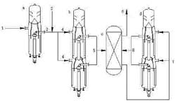 专利简介: 本发明公开了一种以含氧化合物为原料生产丙烯的工艺。将含氧化合物中的甲醇最大限度地转化为二甲醚后在高苛刻度的条件下与分子筛催化剂接触反应后送入分离系统,将丙烯外的剩余组分通入烃转化反应区继续生成丙烯,非丙烯部分作为循环物流返回至烃转化反应区循环反应,其中烃转化反应区所使用的催化剂来自于高苛刻度下催化含氧化合物反应后的积炭剂。本发明可以有效提高丙烯收入率,减少循环物流流量,降低工艺能耗,有利于延长催化剂总寿命,可用于甲醇制丙烯的工业生产中。