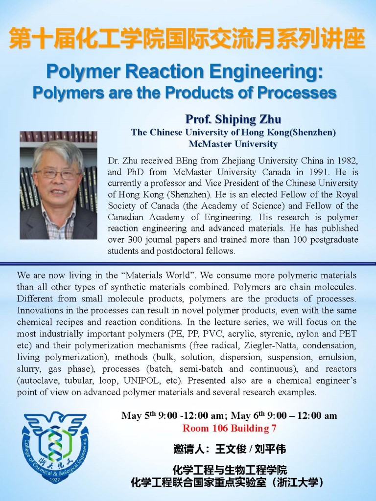 化工学院第九届国际交流月系列讲座----Prof.Shiping Zhu