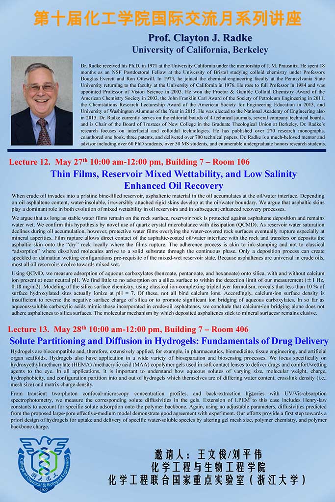化工学院第九届国际交流月系列讲座----Prof. Clayton J. Radke