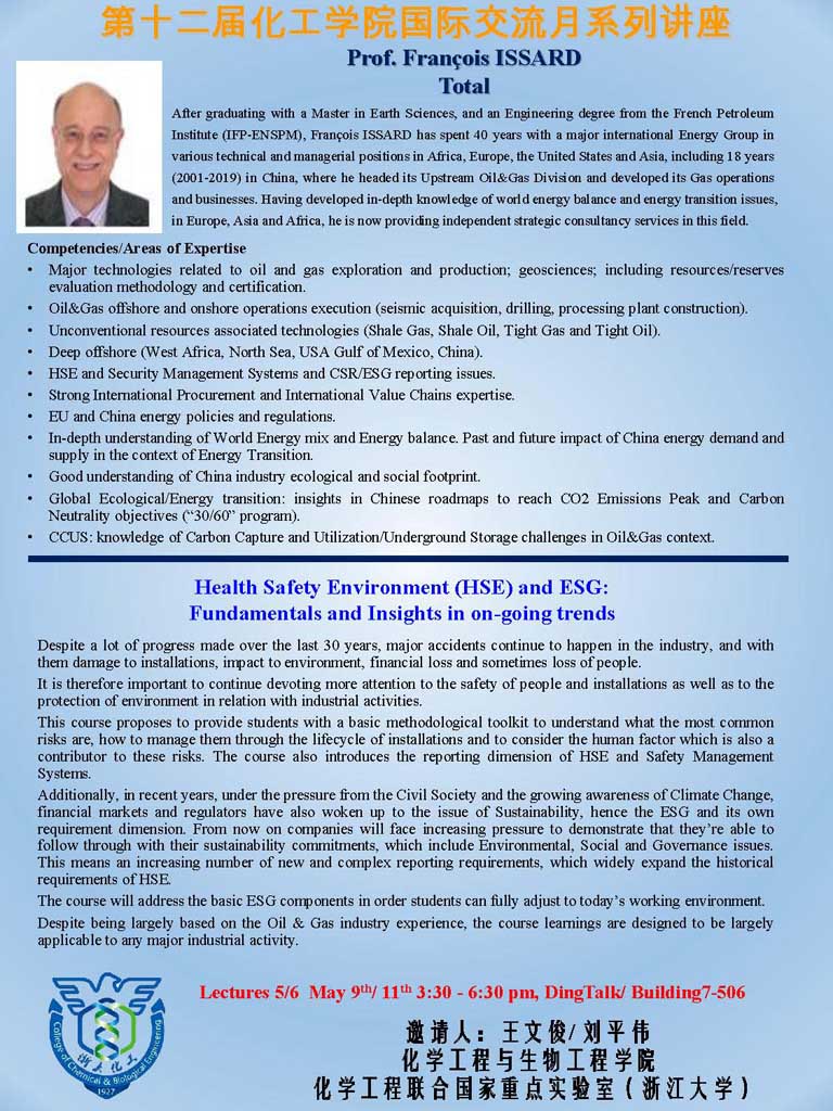 第十二届化工学院国际交流月系列讲座——Professor Francois ISSARD