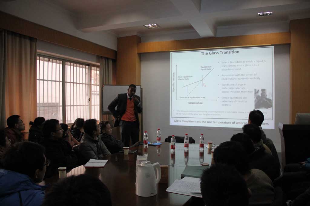 2014年01月10日,普林斯顿大学化学与分子生物工程系R. D. Priestley博士应国家重点实验室主任李伯耿教授邀请邀访问了实验室,并作了“Processing and Characterization of Polymer Thin Films and Nanoparticles”的学术报告。报告后,R. D. Priestley教授和师生们就双方感兴趣的问题进行了交流和讨论。
