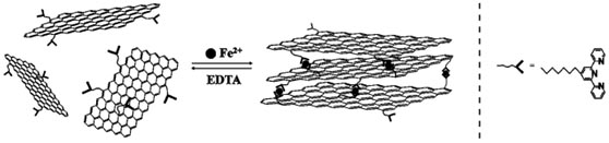 在一般情况下,非官能化的石墨烯是不溶不熔性,这限制了它们的实际应用。冯连芳教授课题组的博士生宋顺刚通过共价接枝制备了三联吡啶功能化石墨烯氧化物,自组装金属离子(如铁,钌)与石墨烯氧化物呈现3D架构。所得到的电极材料在进行高效的能量转换和存储时可显著改善电活性,在氧还原反应(ORR)、光电转换、超级电容领域具有潜在应用价值。撰写的学术论文“Reversible Self-Assembly of Terpyridine-Functionalized Graphene Oxide for Energy Conversion”发表在Angewandte Chemie Int. Ed.(IF=13.734)期刊。