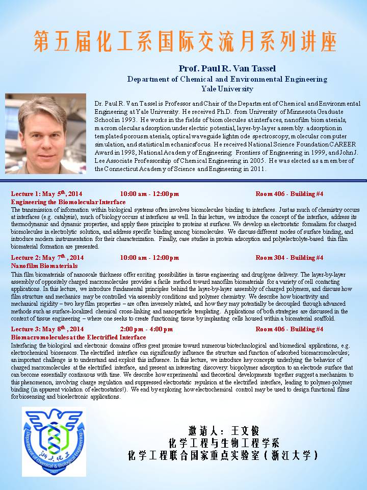 第五届化工系国际交流月系列讲座-Prof. Paul R. Van Tassel