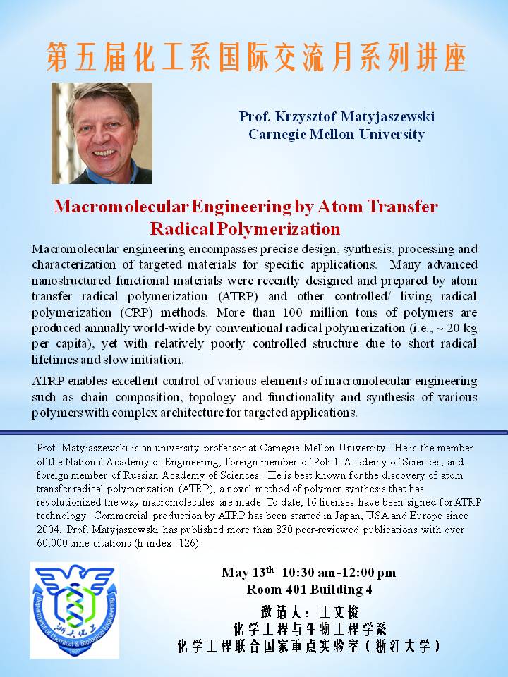 第五届化工系国际交流月系列讲座-Prof.Krzysztof Matyjaszewski