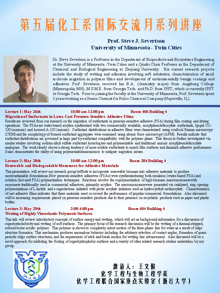 第五届化工系国际交流月系列讲座-Prof.Steve J. Severtson