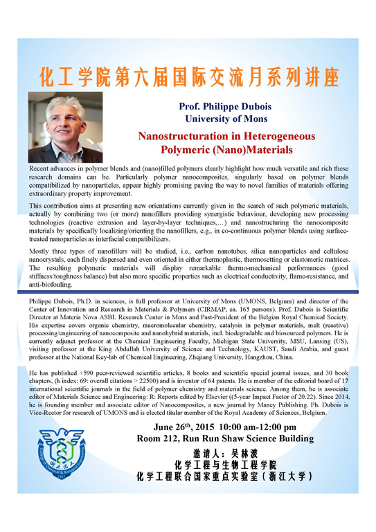 第六届化工学院国际交流月系列讲座-Prof.Philippe Dubois