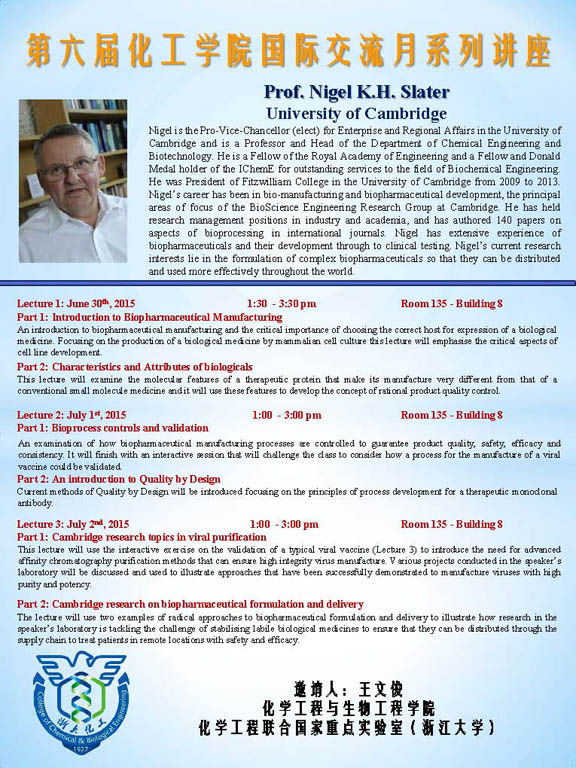第六届化工学院国际交流月系列讲座-Prof.Nigel K.H. Slater