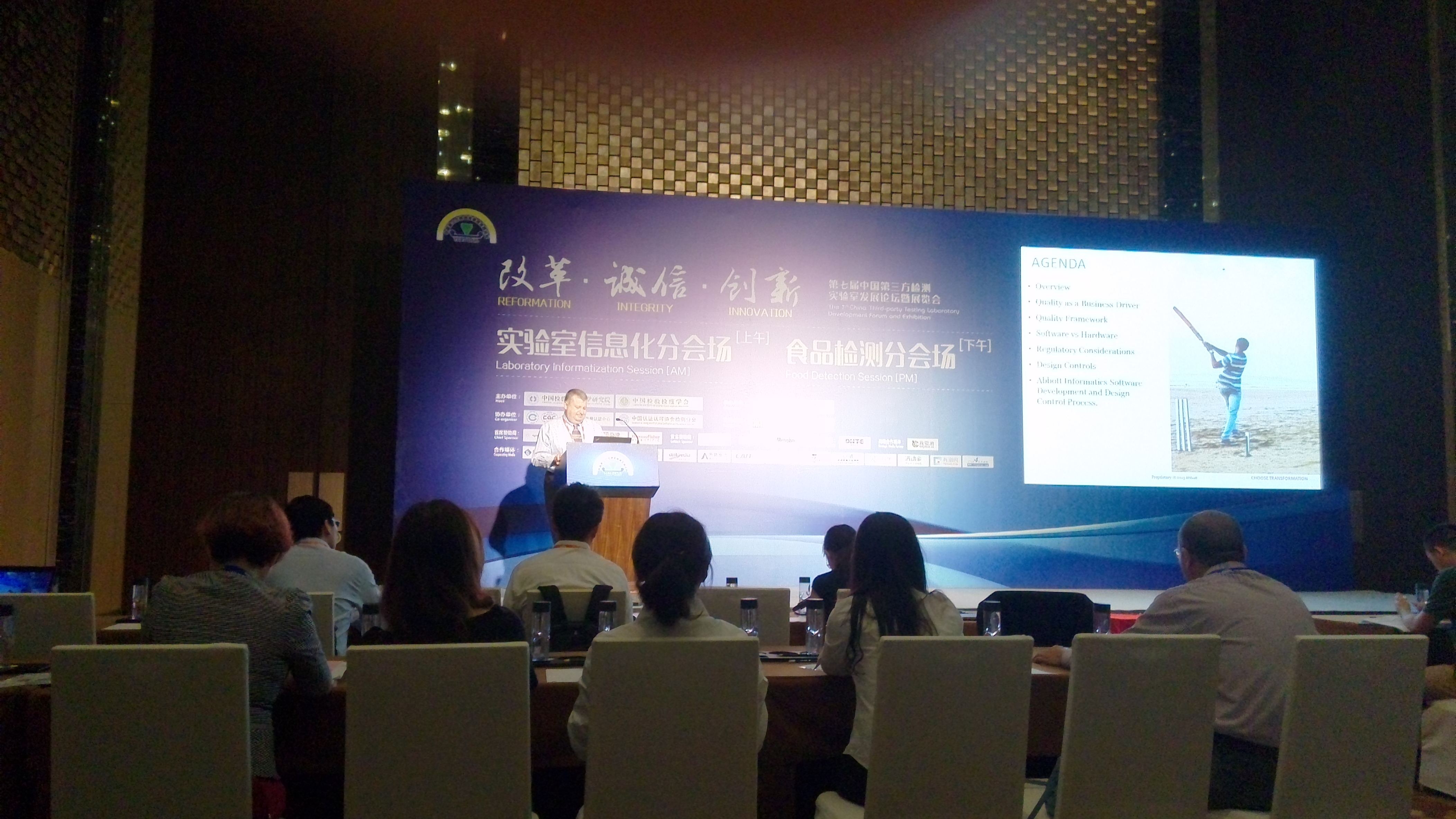 2015年9月10日-11日化学工程联合国家重点实验室(浙江大学)测试平台工程师浦群、助理研究员郑娜参加了以“改革、诚信、创新”为主题的第七届中国第三方检测实验室发展论坛,该论坛由中国检验检疫科学研究院和中国检验检疫学会联合主办。论坛期间,工程师浦群、助理研究员郑娜聆听了行业管理专场和行业发展专场的演讲,主管机构领导从政策解读、政府监管层面上,论述检测机构改革、资质管理改革和实验室认可发展动态等议题,了解了第三方检测行业的未来发展之路,参加了实验室质量保证专场和实验室信息化专场论坛,为平台建设实验室信息管理系统奠定良好基础,为平台积极参加实验室认证和认可做好铺垫,进一步提升测试平台软实力,为测试平台规范有序运行提供保障。
