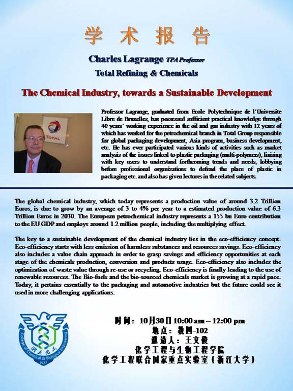 Charles Lagrange教授( Total Refining & Chemicals )学术报告