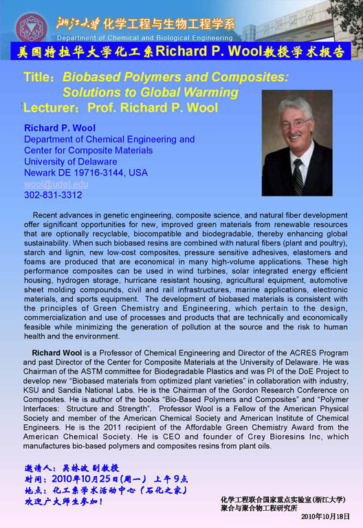 美国特拉华大学化工系Richard P.Wool教授学术报告