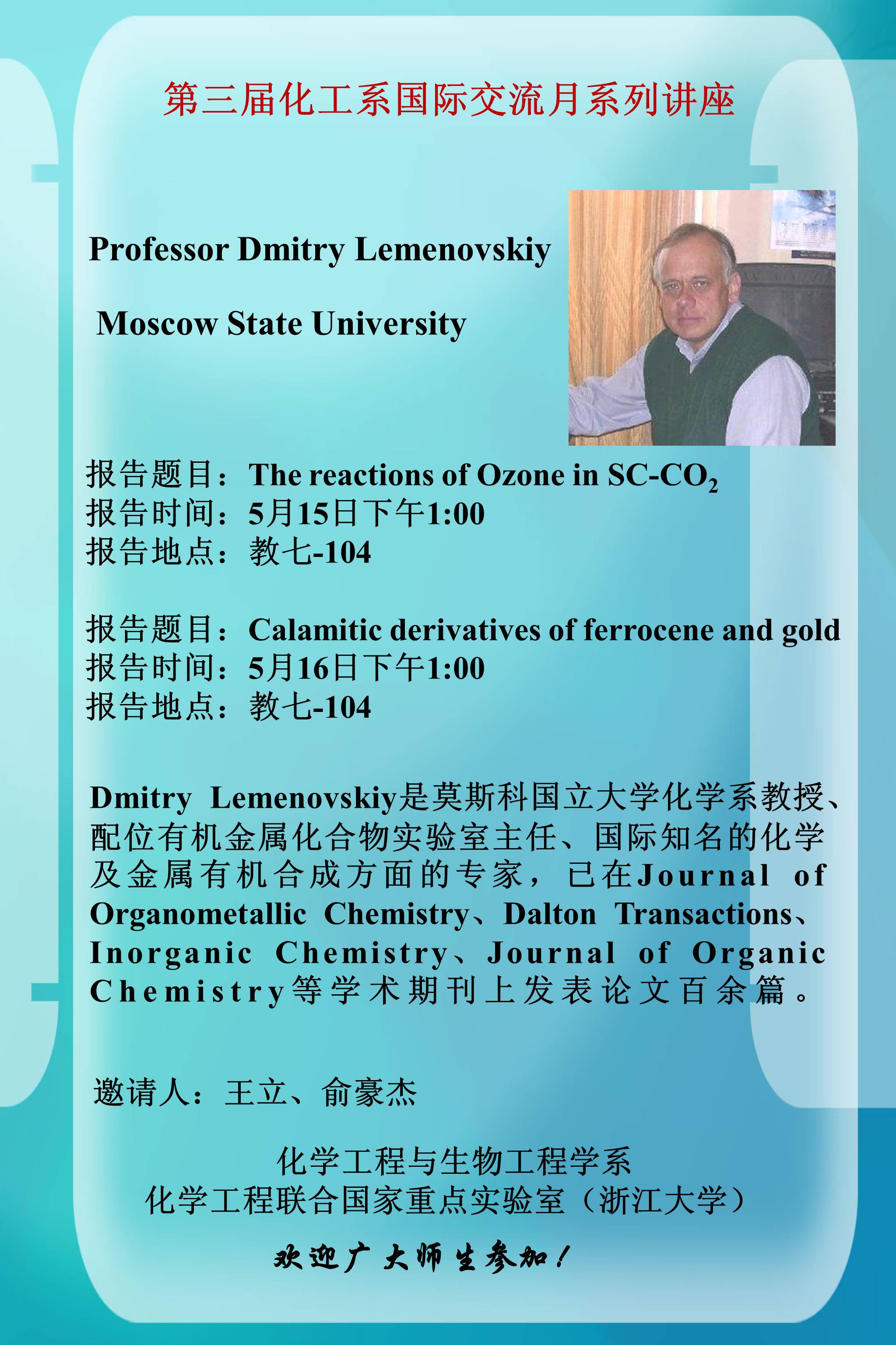 化工系第三届国际交流月系列讲座--Prof. Dmitry Lemenovskiy