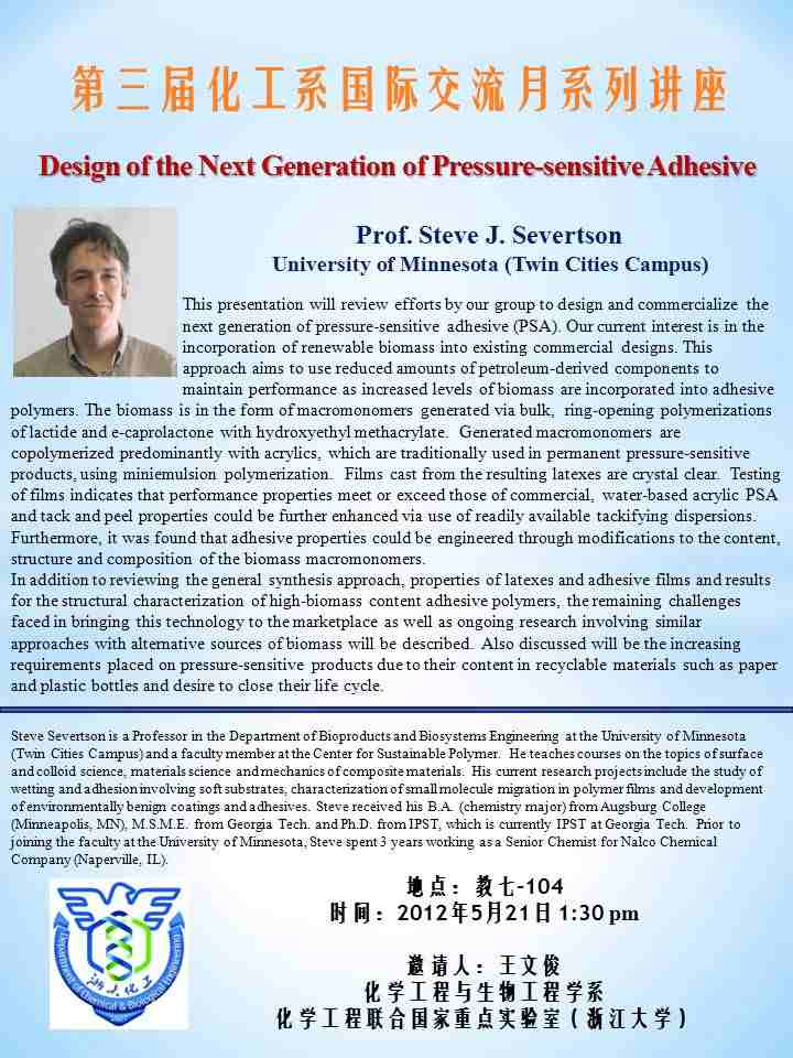 化工系第三届国际交流月系列讲座--Prof. Steve J. Severtson