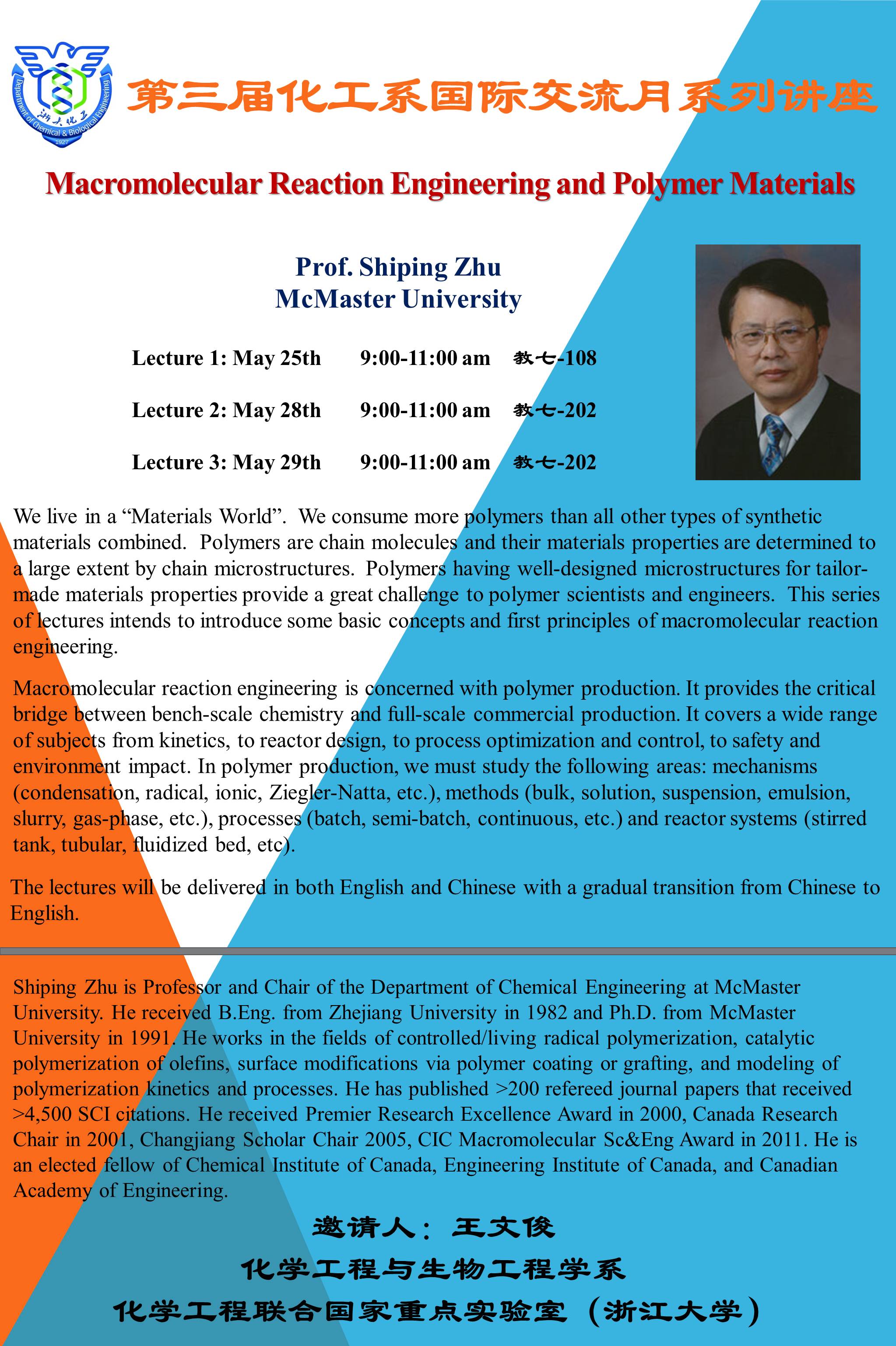 化工系第三届国际交流月系列讲座--Prof. Shiping Zhu