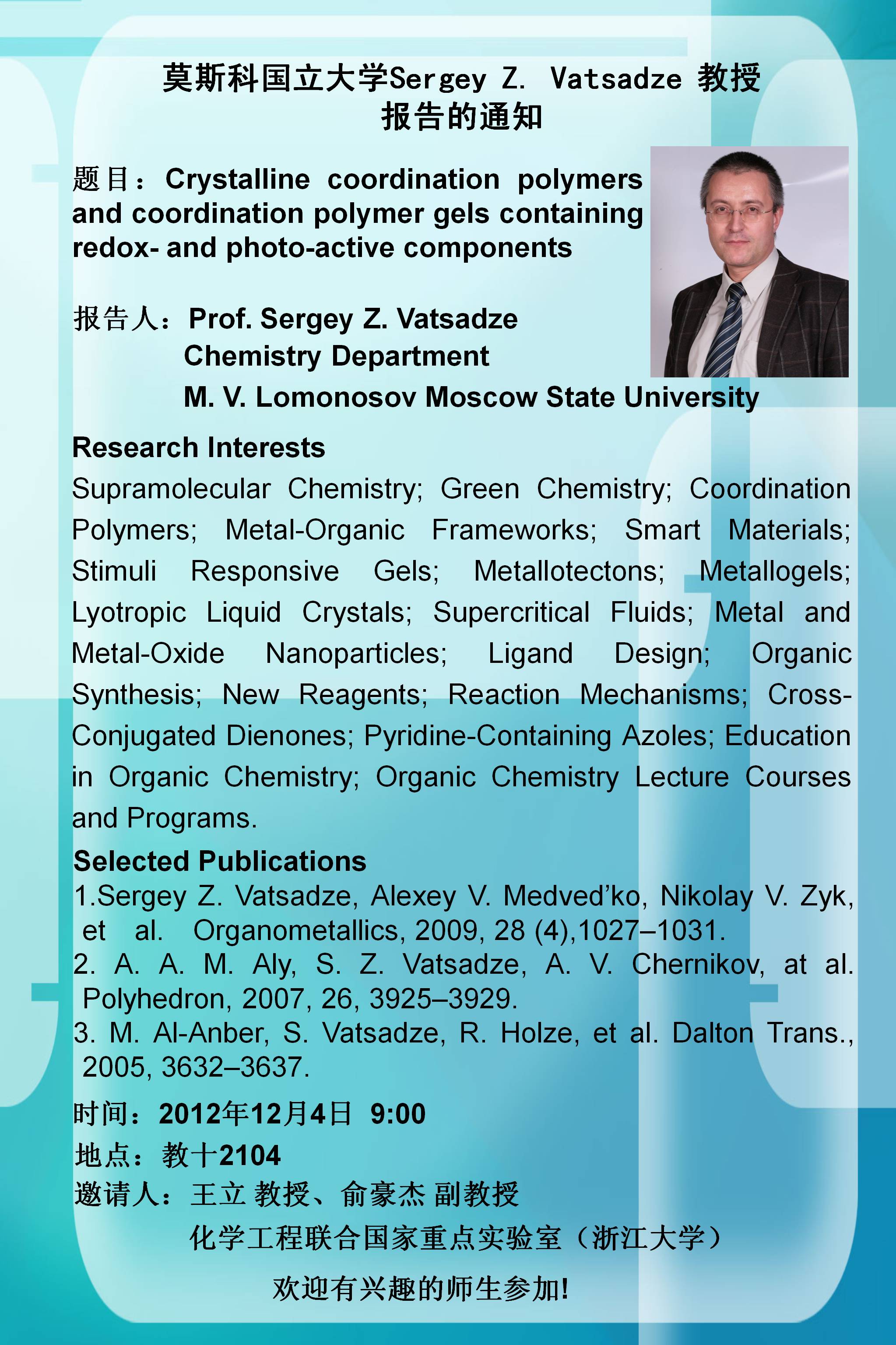 莫斯科国立大学Sergey Z. Vatsadze教授学术报告
