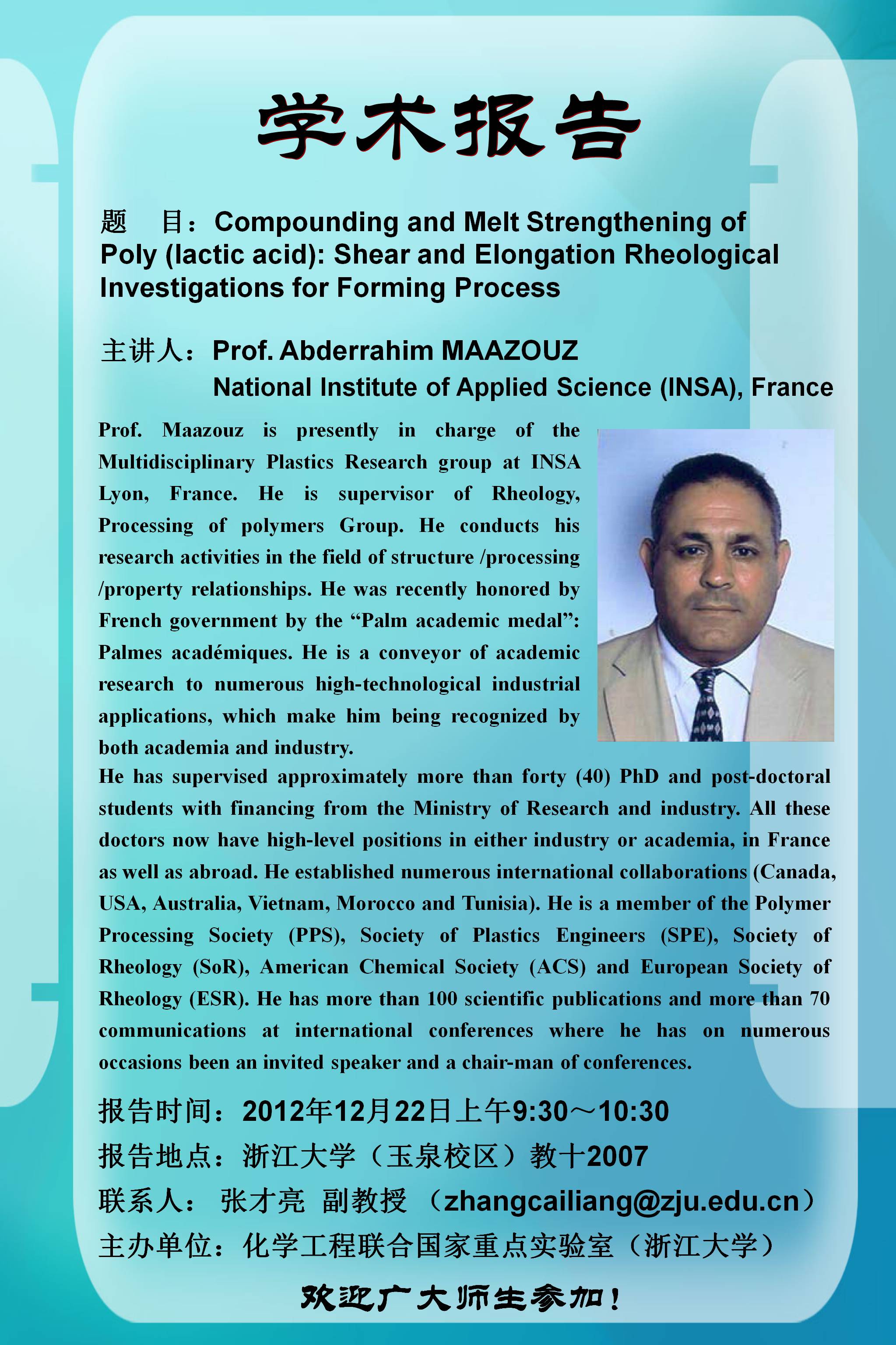 法国国家应用科学研究院Abderrahim Maazouz教授学术报告
