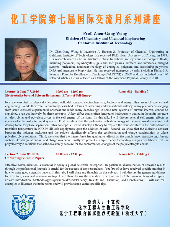 化工学院第七届国际交流月系列讲座----Prof. Zhen-Gang Wang