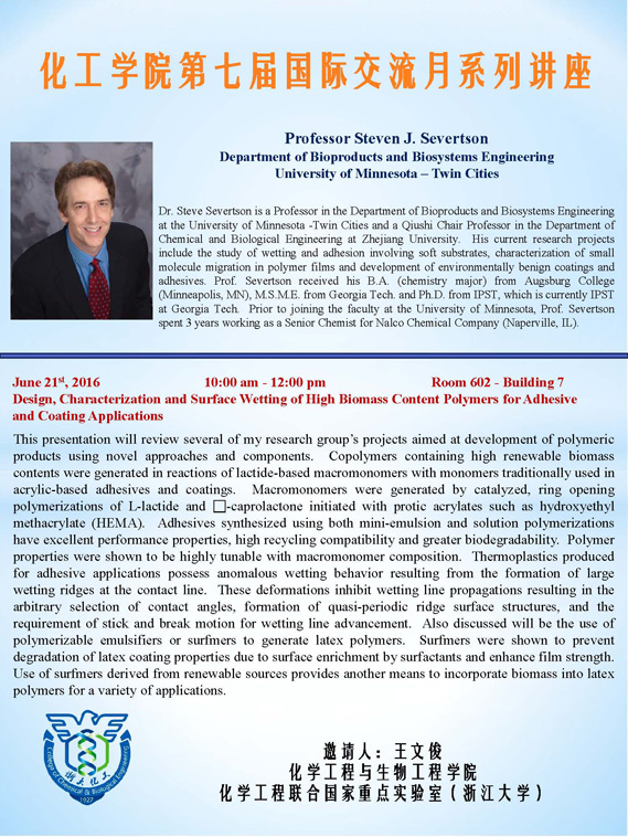 化工学院第七届国际交流月系列讲座----Professor Steven J. Severtson