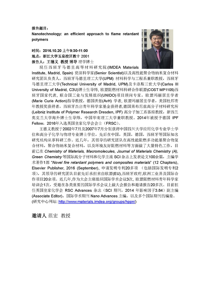 西班牙马德里高等材料研究院资深科学家王德义教授学术报告