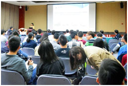 聚合与聚合物工程研究所所长罗英武教授首先在开幕式上致辞,并介绍了论坛的安排情况。本次学术论坛分口头报告、墙报展示两部分,其中口头报告15个,墙报34个,研究方向集中于聚合反应工程、聚合过程优化、高分子加工过程、功能高分子材料、聚合物结构与性能等不同领域。在论坛中,15名研究生做了精彩的学术报告,引发了参会老师和同学的热烈探讨和互动,参会的老师们也与报告者进行了深入的学术交流。在将近5小时的口头报告后,论坛特别邀请杜邦防护科技全球商务总监、浙大校友张毅博士为同学们做了题为“如何在外企中成长”的精彩报告会,同时与同学们互动,解答了同学们未来在求职、职业规划、职业成长的一系列问题。最后,国家杰出青年基金获得者谢涛教授对同学们的报告情况进行了点评,针对如何做好学术报告和学术交流等方面,提出了很多宝贵建议。