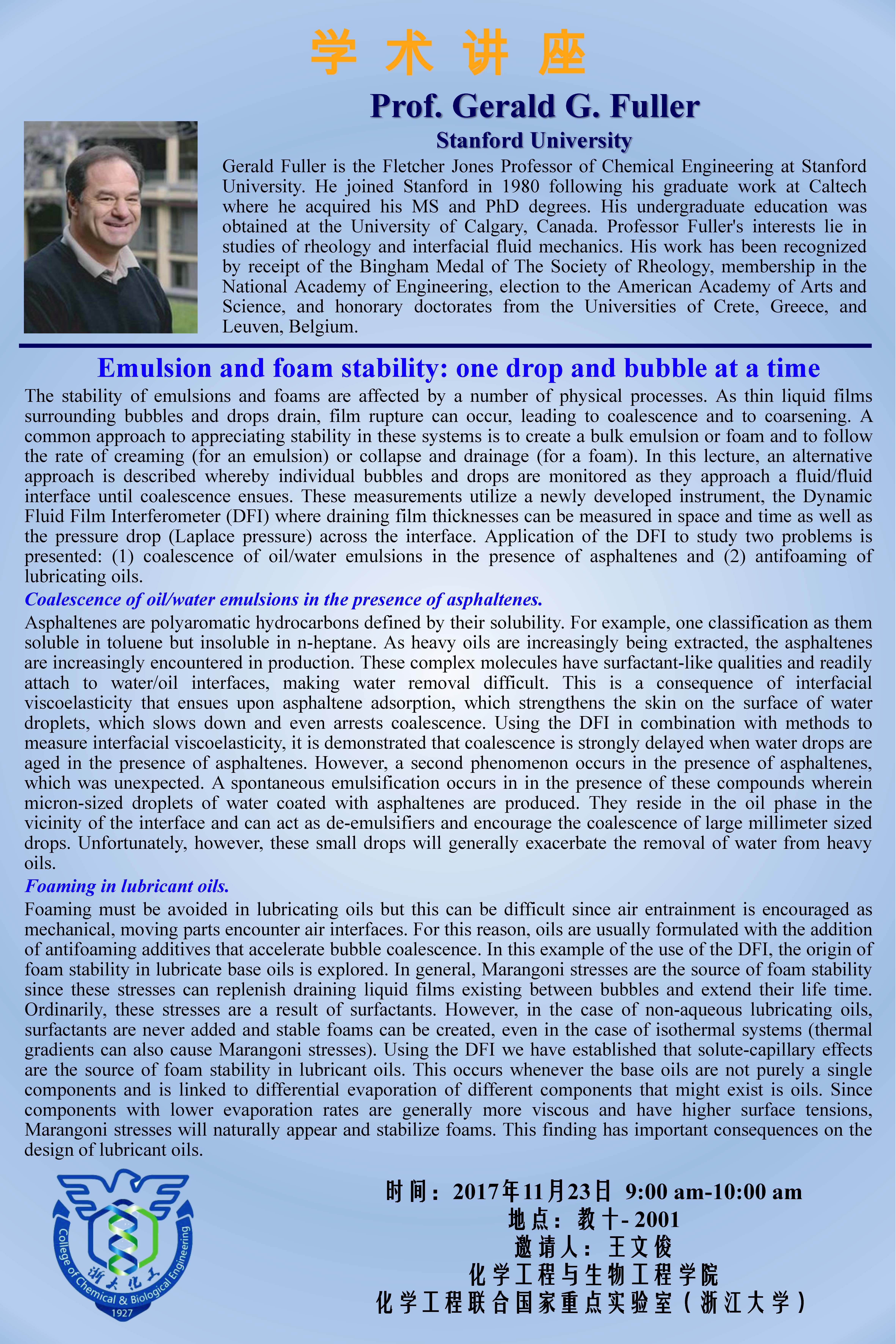 斯坦福大学Gerald Fuller院士学术报告