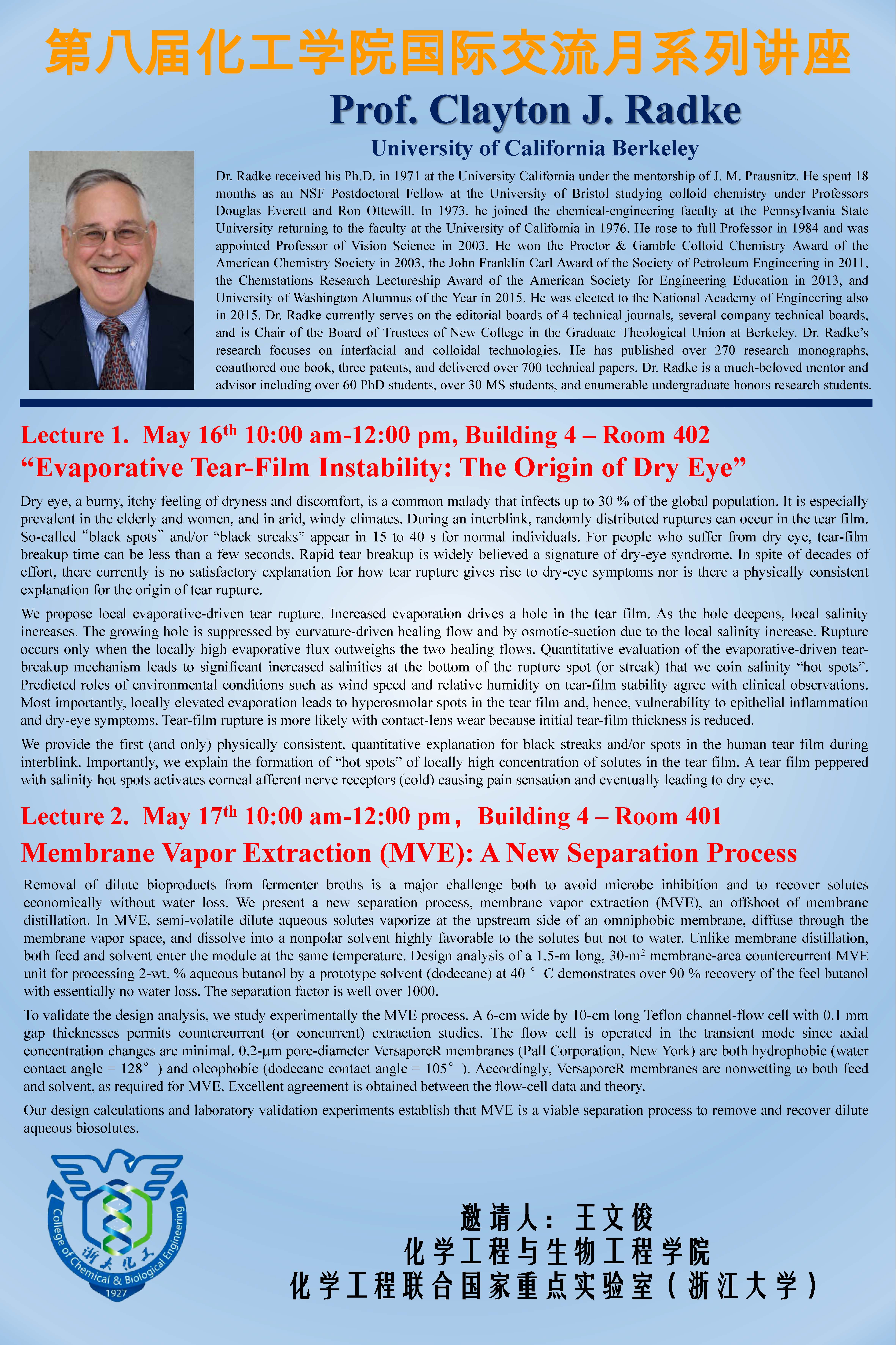 化工学院第八届国际交流月系列讲座----Prof.Clayton J. Radke