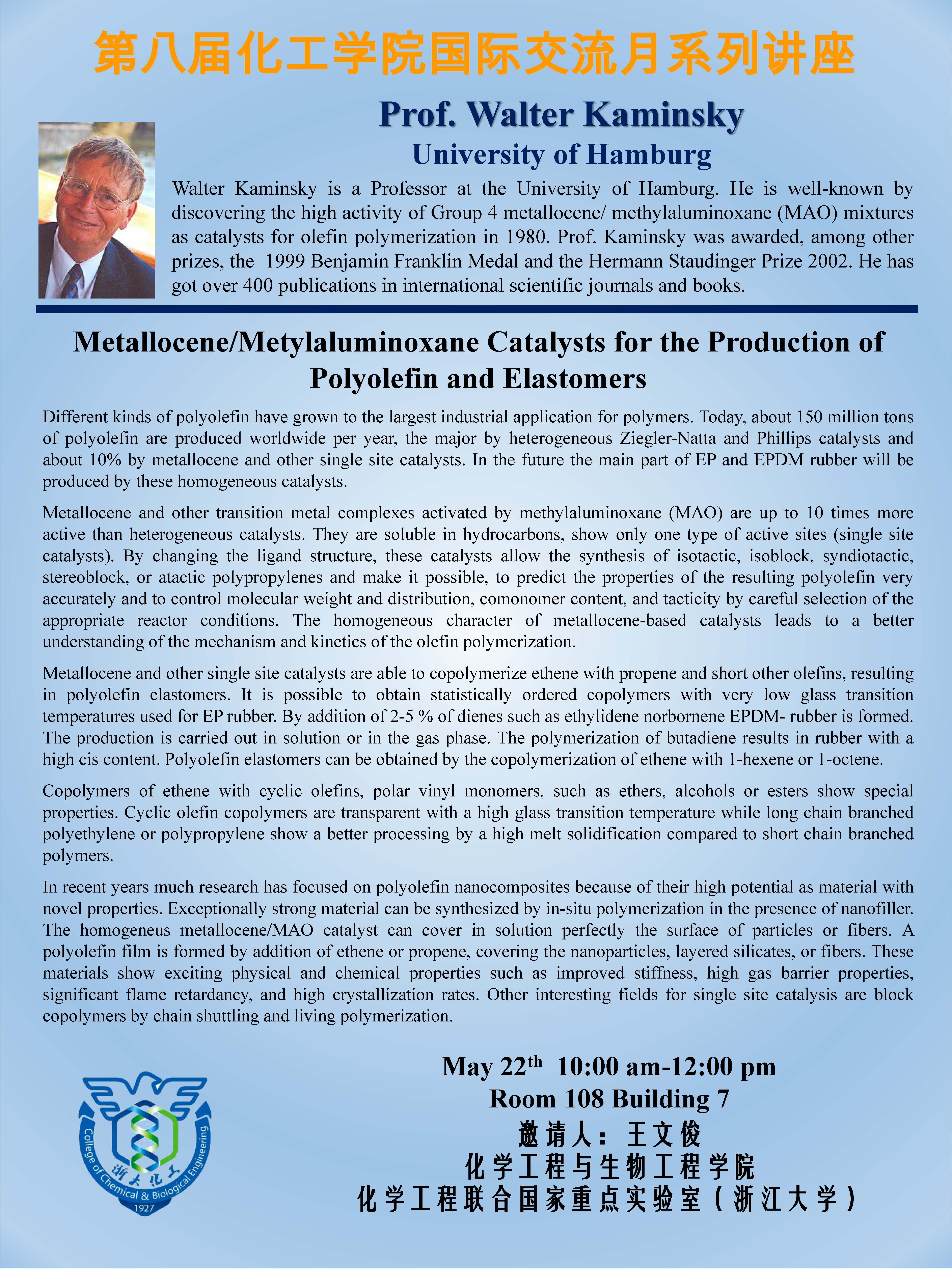 化工学院第八届国际交流月系列讲座----Prof.Walter Kaminsky